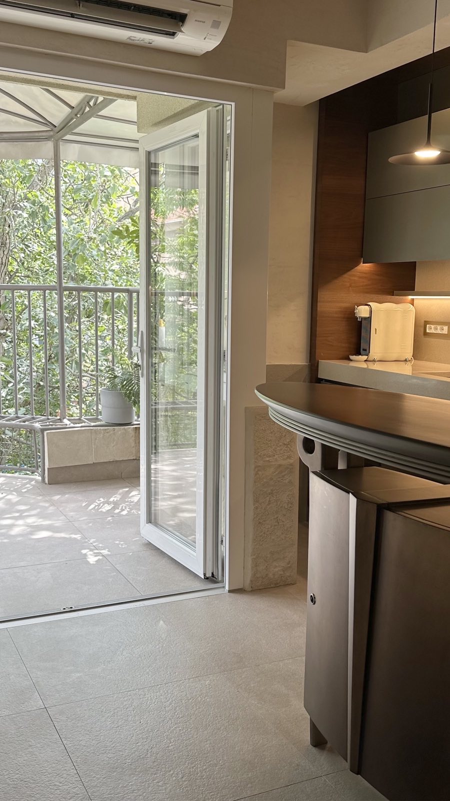 Takođe, ceo stan je opremljen vrhunskim Bose ozvučenjem povezanim sa Yamaha uređajem, koji omogućava savršenu kontrolu muzike po zonama, dodajući još jedan nivo luksuza i komfora – kako na terasi tako i u enterijeru.