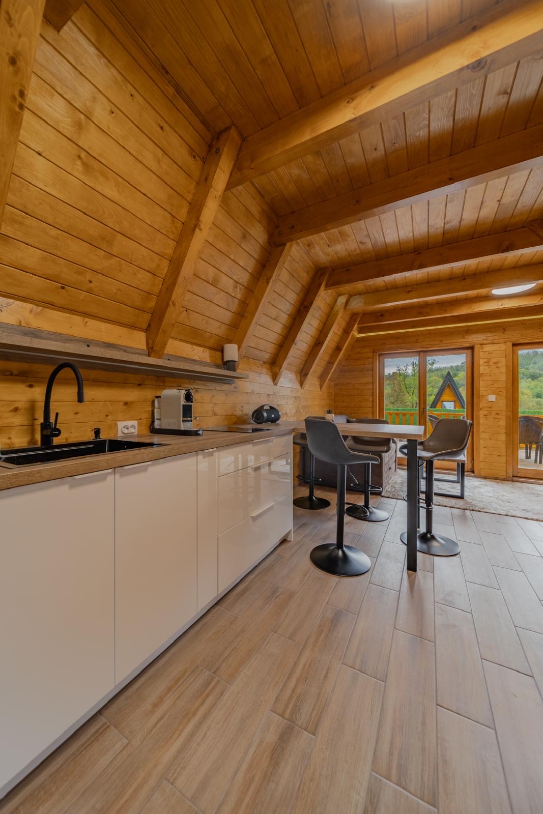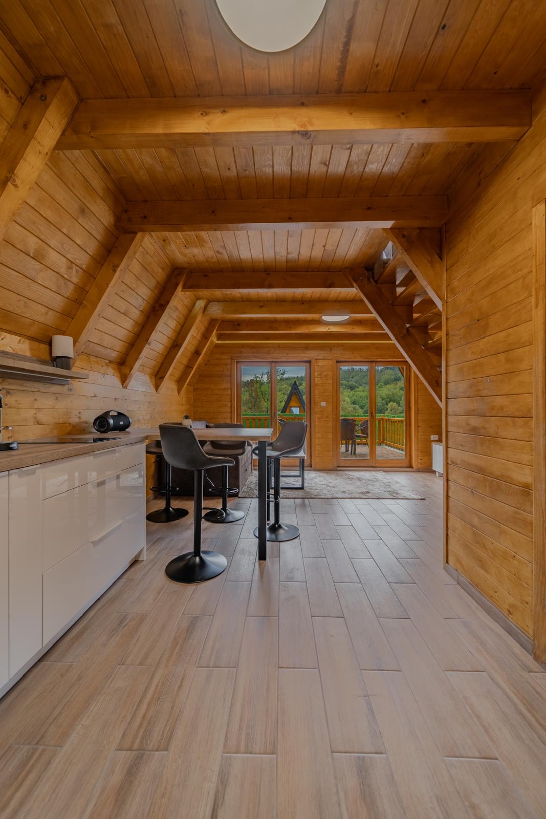 Topao drveni enterijer. Privatan parking obezbeđen za vaše vozilo. Mesto koje pruža savršen balans – blizu grada, a opet ušuškano u prirodi.