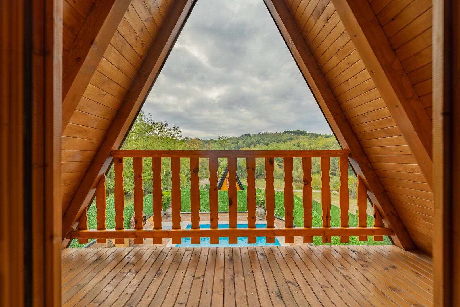 At your disposal is a completely new and modernly equipped log cabin of 50 m², with a capacity of up to 6 people. Private pool.