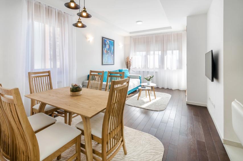 Svaka prostorija je klimatizovana, stan ima terasu, kupatilo i zaseban toalet, mesto u podzemnoj garaži.