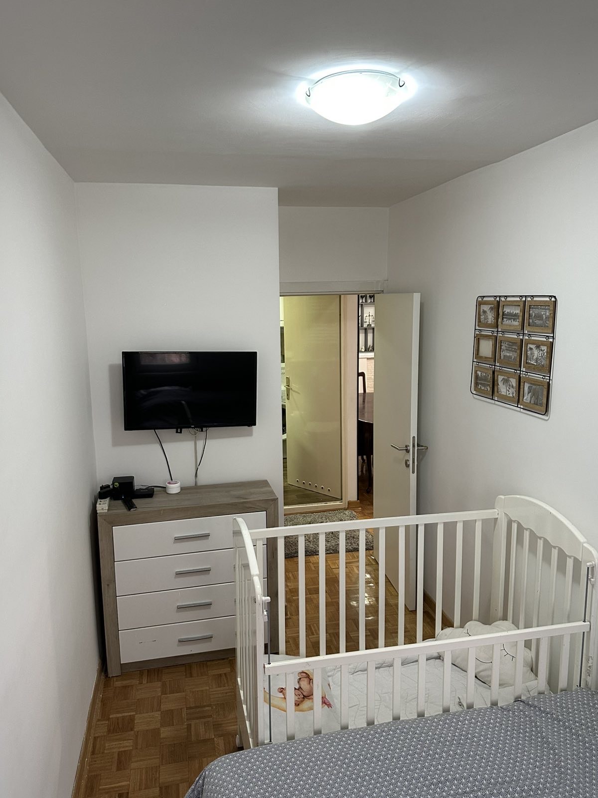 Stan ima 3 odvojene spavaće sobe (1 sa francuskim i 2 za decu) + dnevnu sobu.