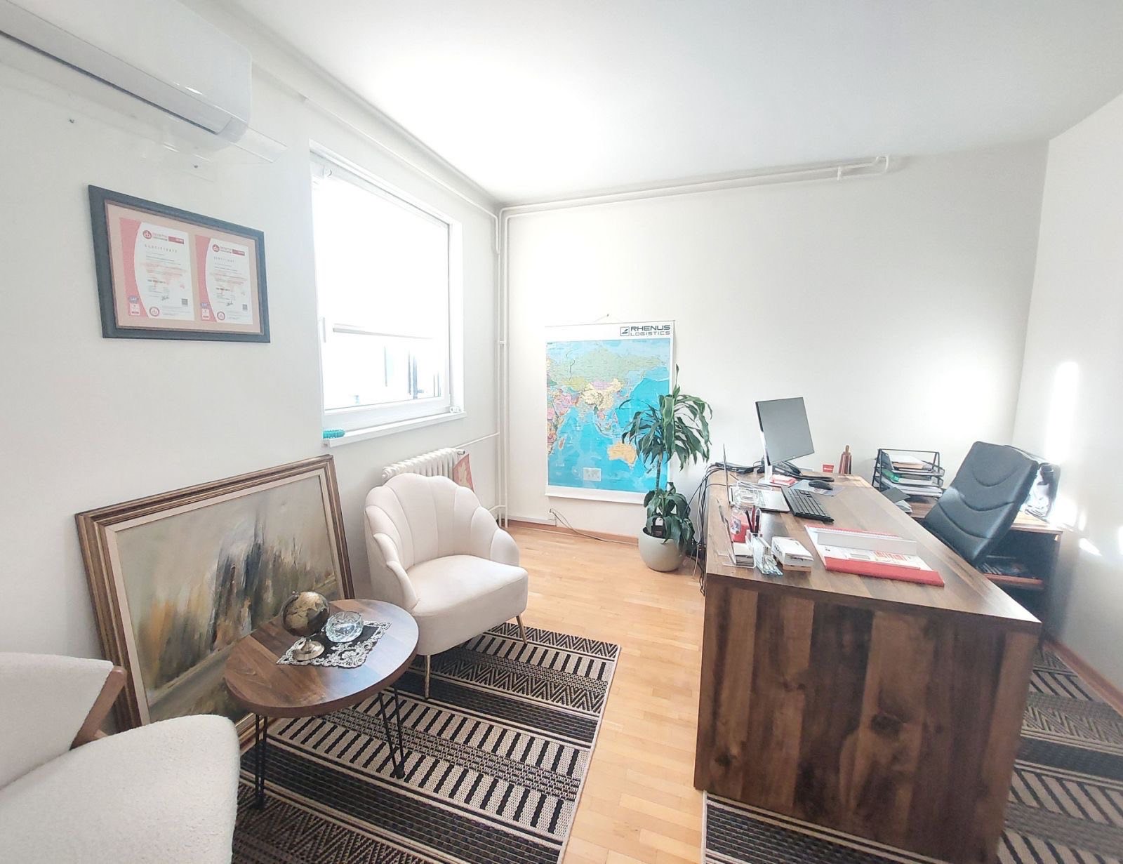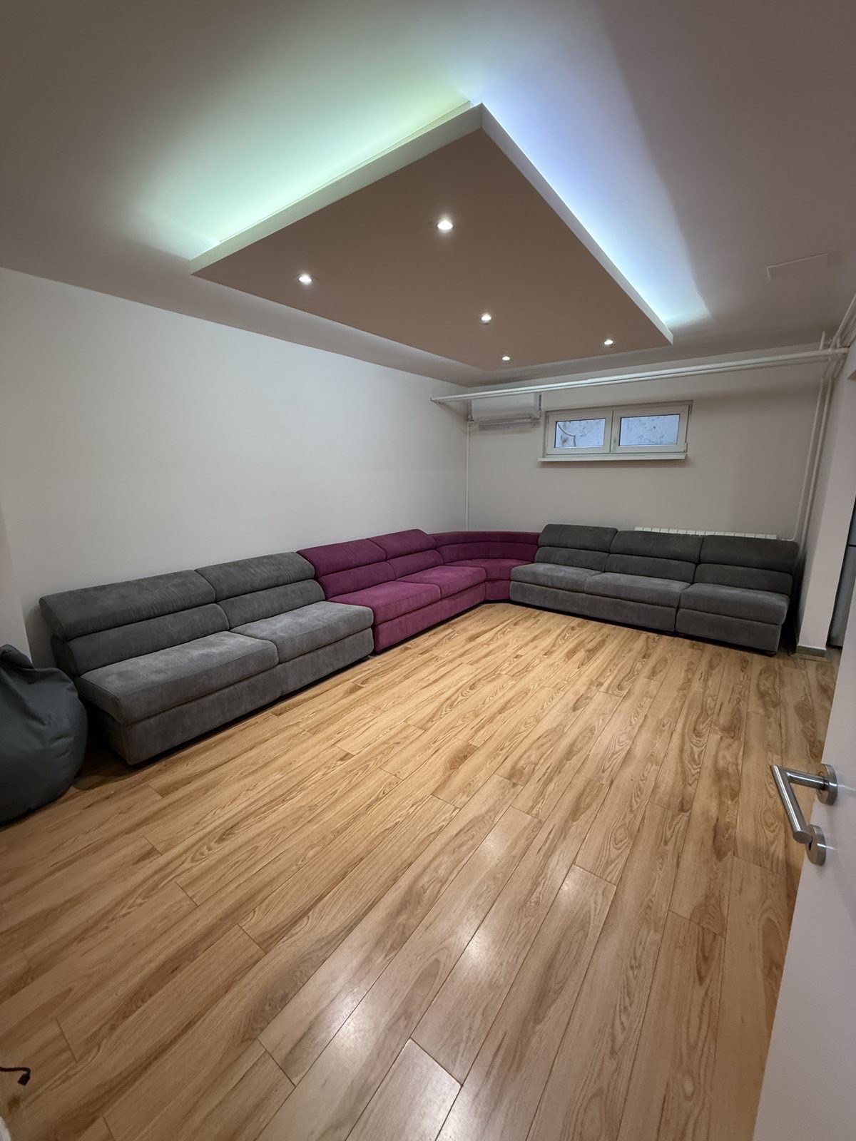 ENG – The house is located in a quiet part of Bežaniska Kosa, with an area of 250 square meters, renovated. It consists of basement, ground floor, first and second floor. It has a landscaped yard. Fully equipped 2 kitchens, toilet and bathroom. Built-in 5 air conditioners, video surveillance and intercom. Attached garage and parking space. Suitable for living and business premises.