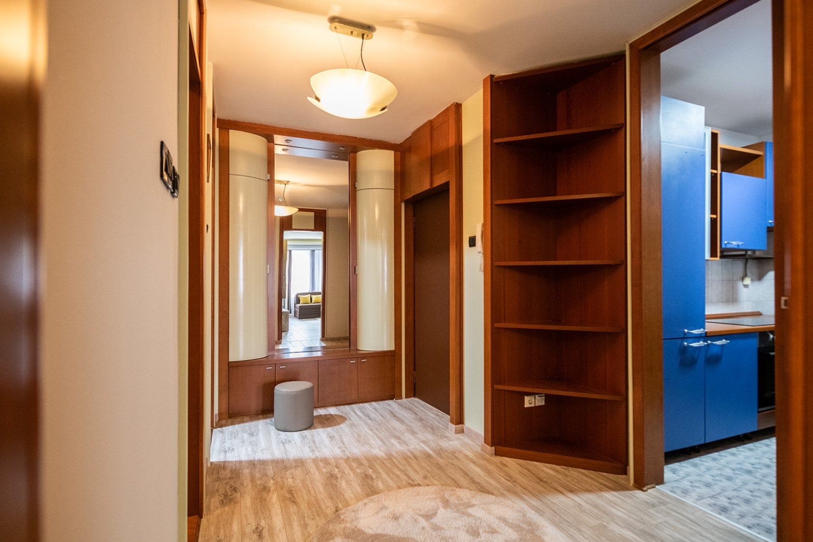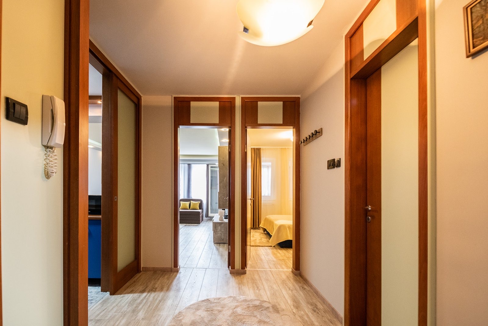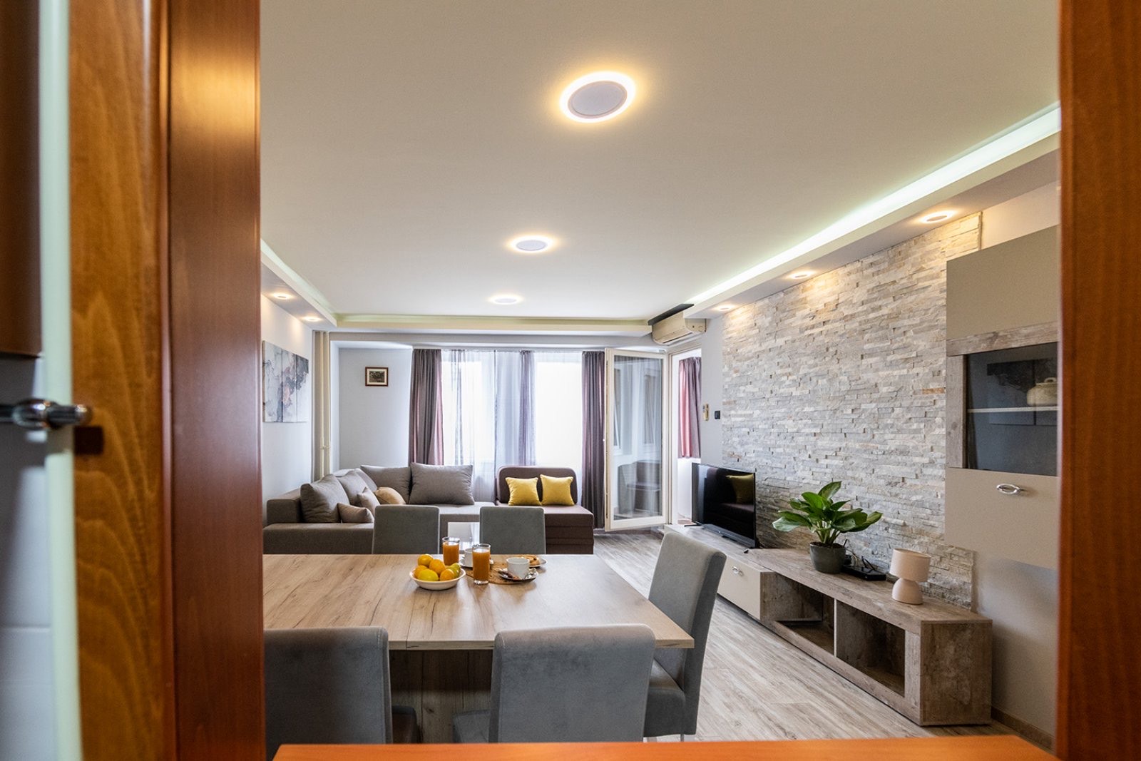 Kvadratura je 60 kvadrata, nalazi se u zgradi sa liftom. Stan se sastoji iz predsoblja, prostrane dnevne sobe i trpezarije, kuhinje, kupatila, spavaće sobe, ostave, zastakljene lođe, a od uređaja ima veš mašinu, mašinu za sušenje veša, mašinu za pranje sudova, frižider, zamrzivač, mikrotalasnu rernu, male kućne aparate, dosta posuđa, posteljine i peškira koje mogu da stavim na raspolaganje, ukoliko je zakupac zainteresovan.