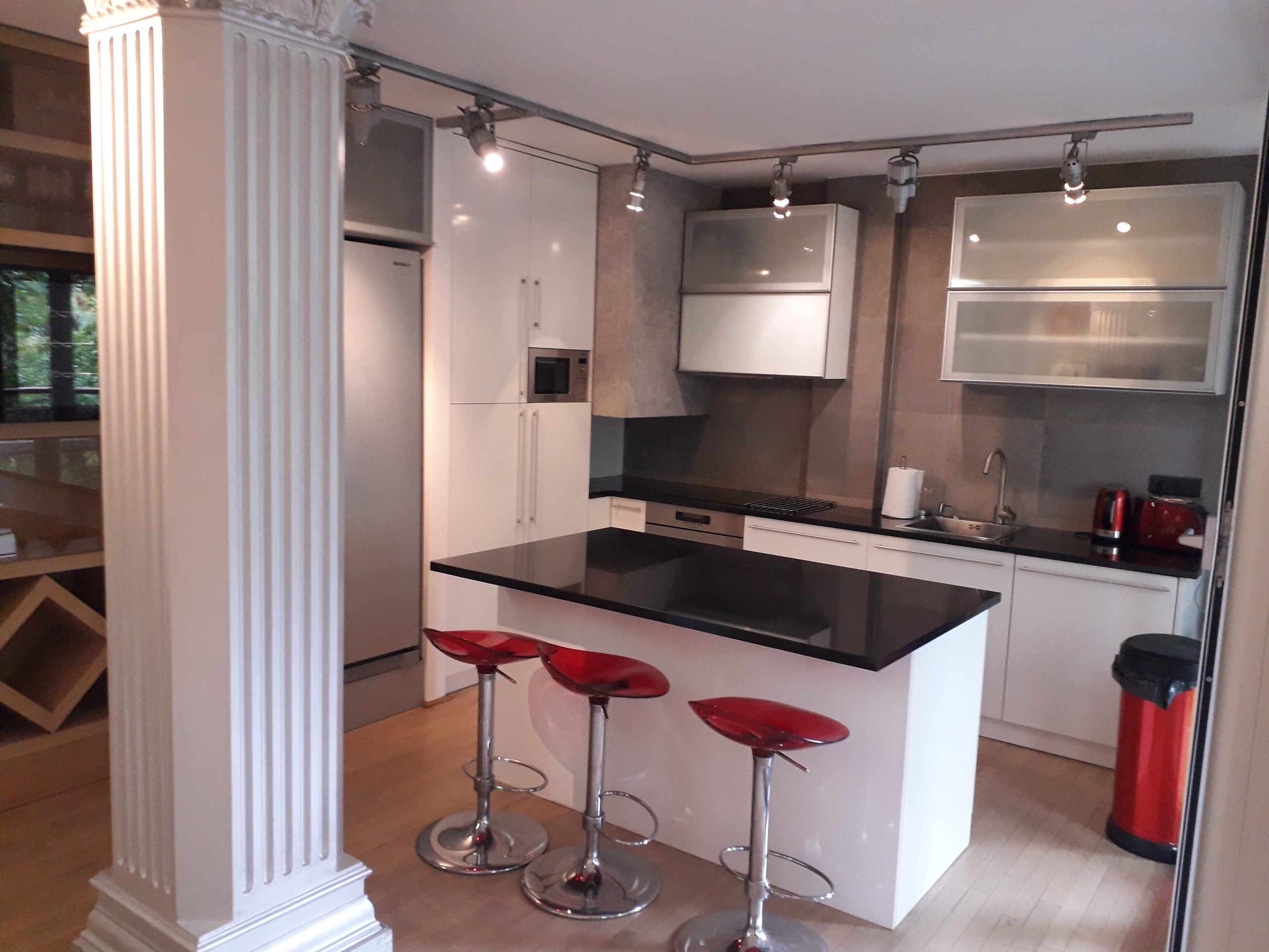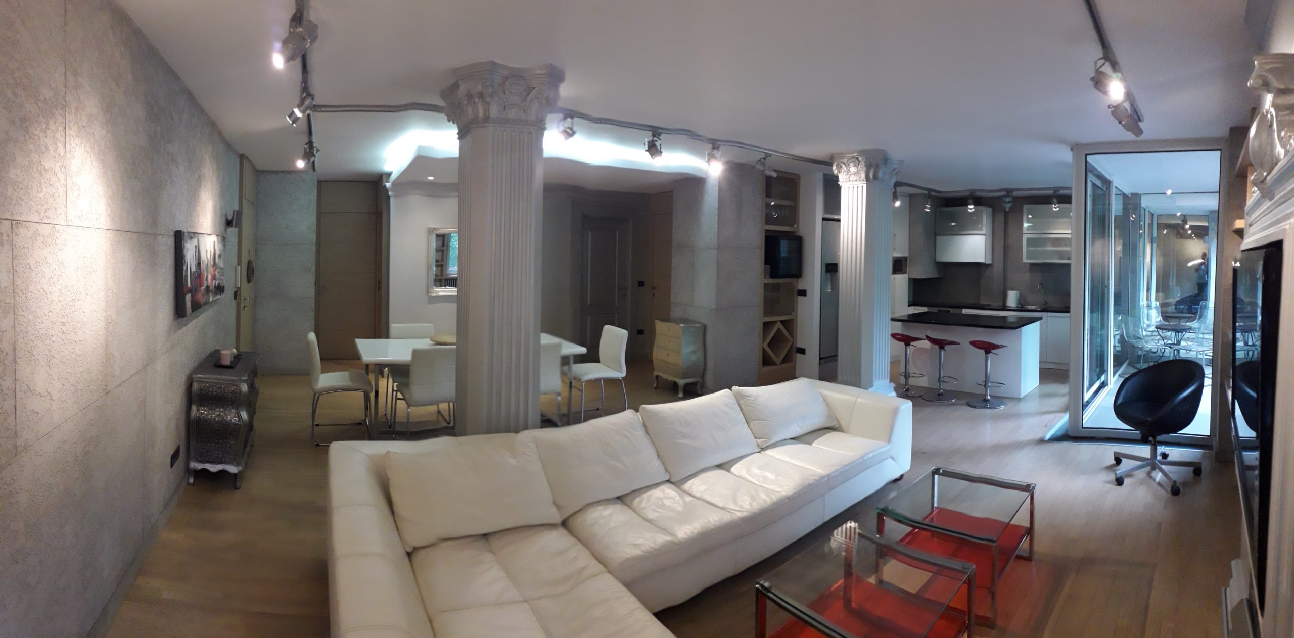 Extra lux, living room about 60m2, two suites (bedrooms with their own bathrooms), a total of 3 bathrooms (2 in the suites and one guest room, next to the living room), wardrobe with a small work space, fully equipped.