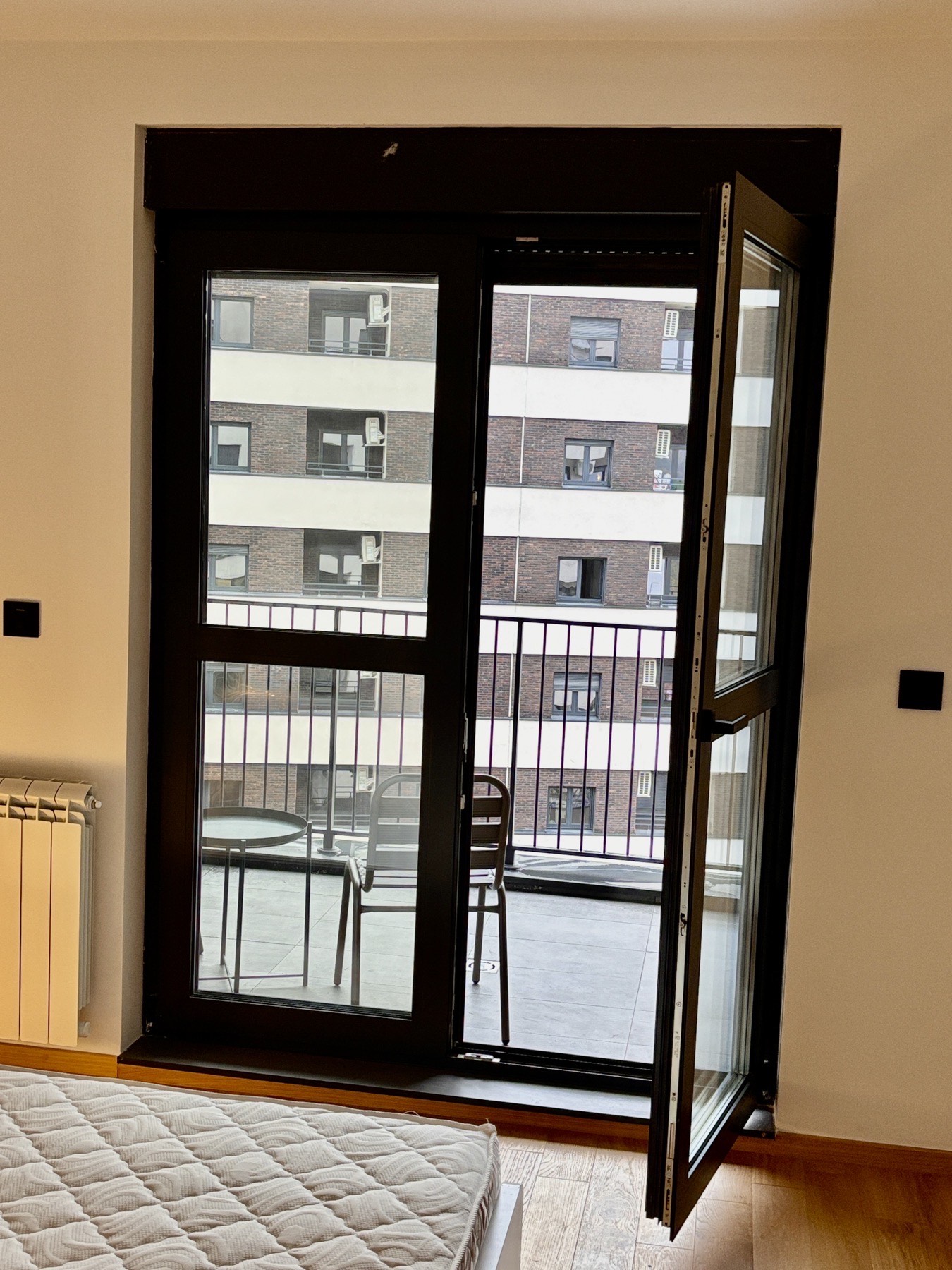 Hrastov parket, granitna keramika, aluminijumska stolarija (4 godišnja doba staklo) za ZVUČNI i TOPLOTNU IZOLACIJU.