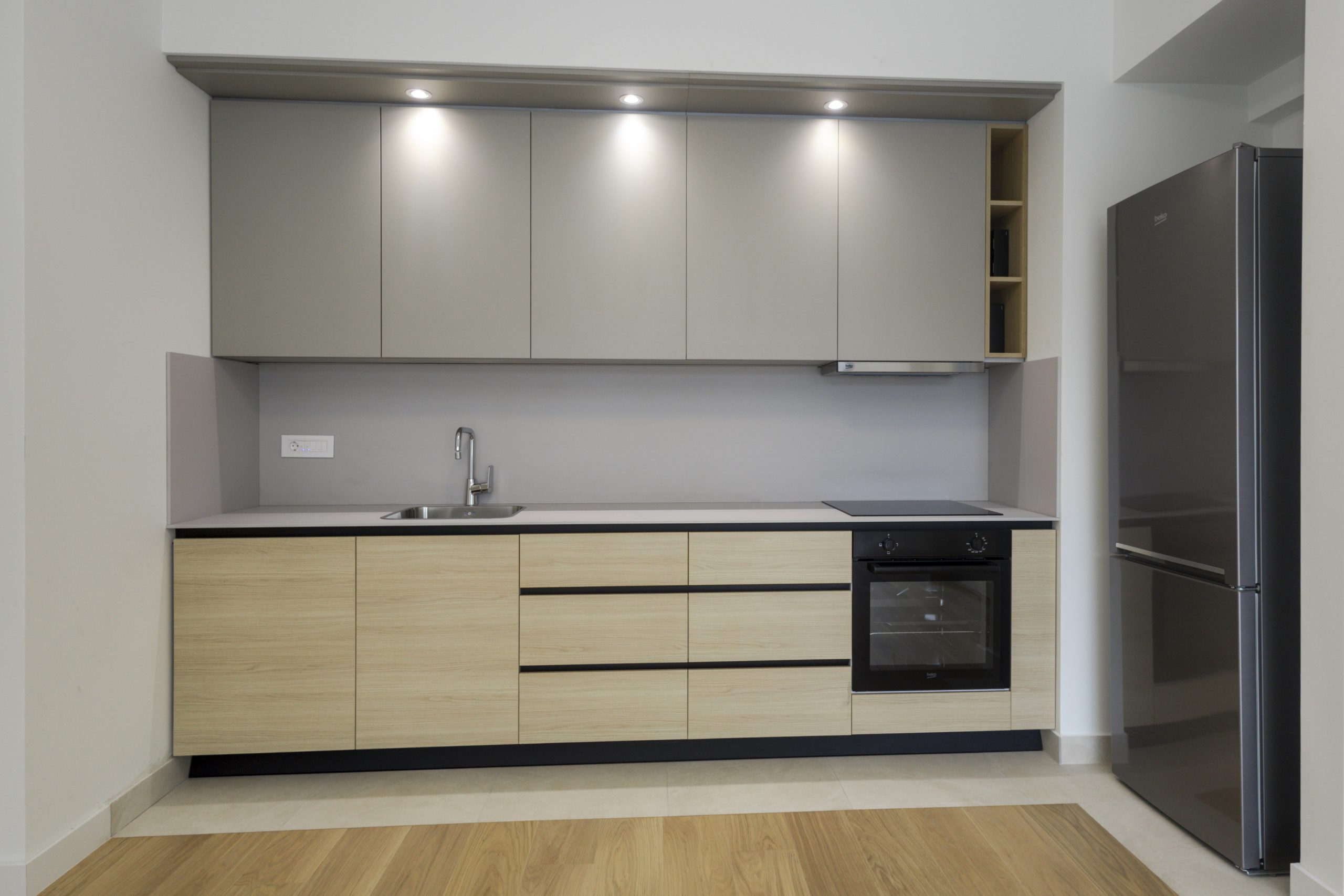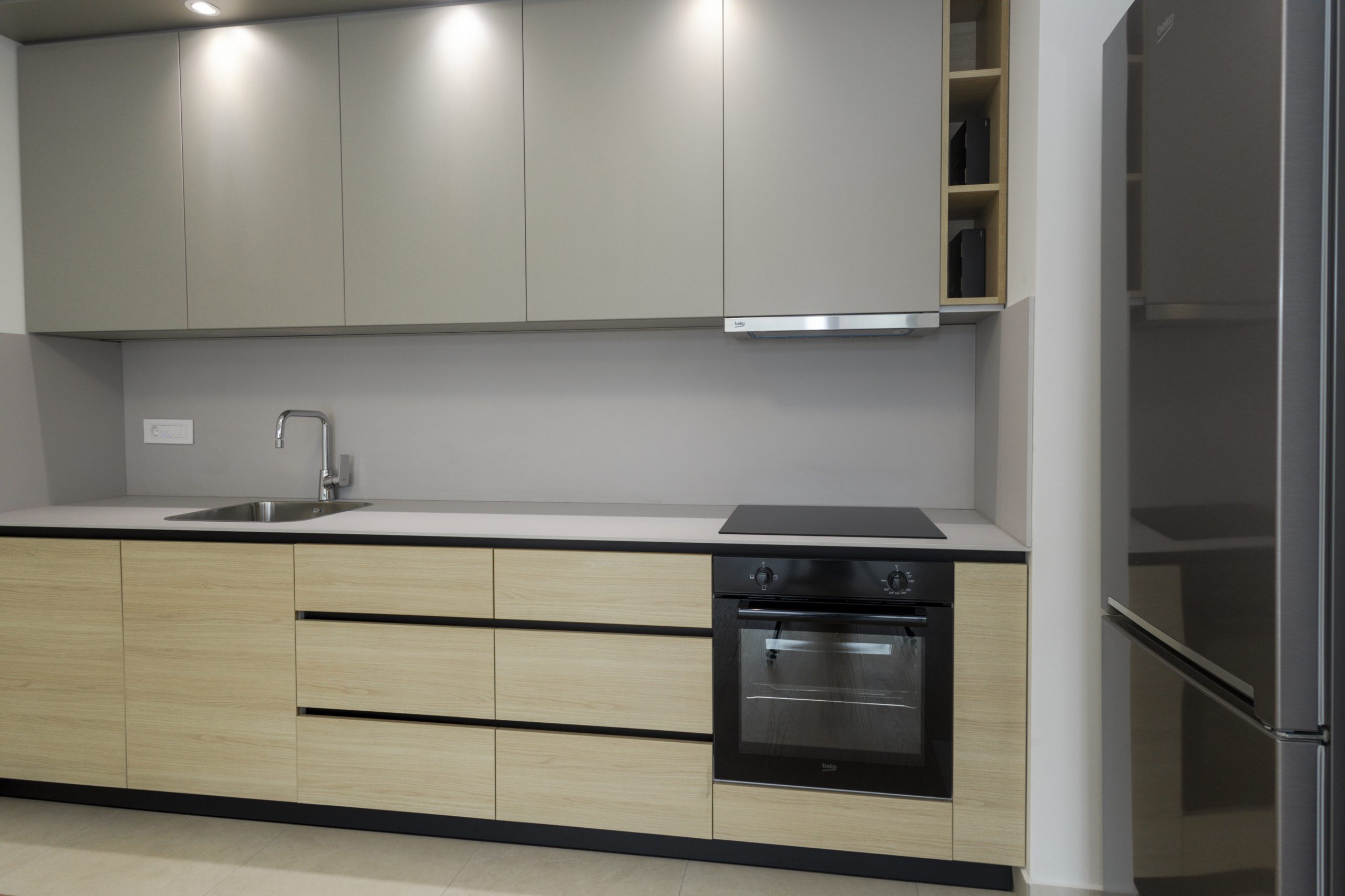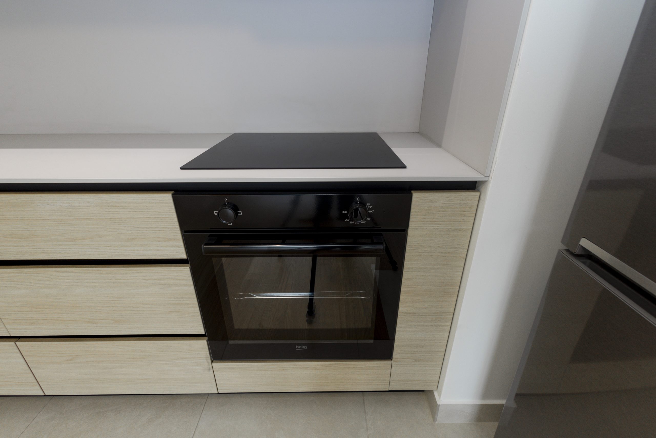 Квартира состоит из двух спален (в каждой встроенный шкаф, что не видно на фото), просторной гостиной и современной встроенной кухни со всей техникой. Tакже имеется стиральная и сушильная машины, а также элегантные электрические рулонные шторы.