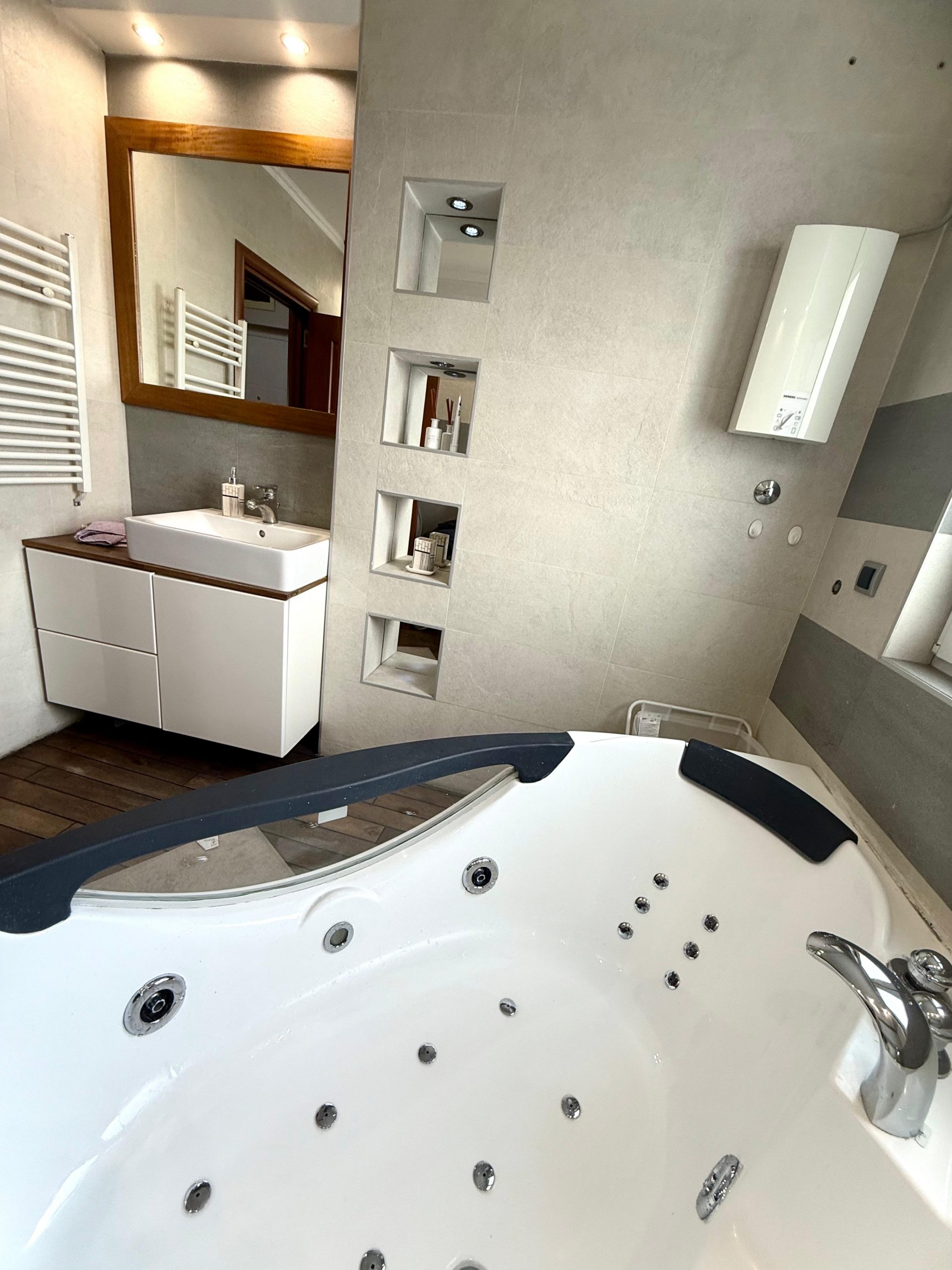 The apartment is located on a quiet street, directly across from Belgrade Waterfront, with excellent connectivity to other parts of the city. Includes private parking. Utility costs are low. The apartment is three-sided and very bright.