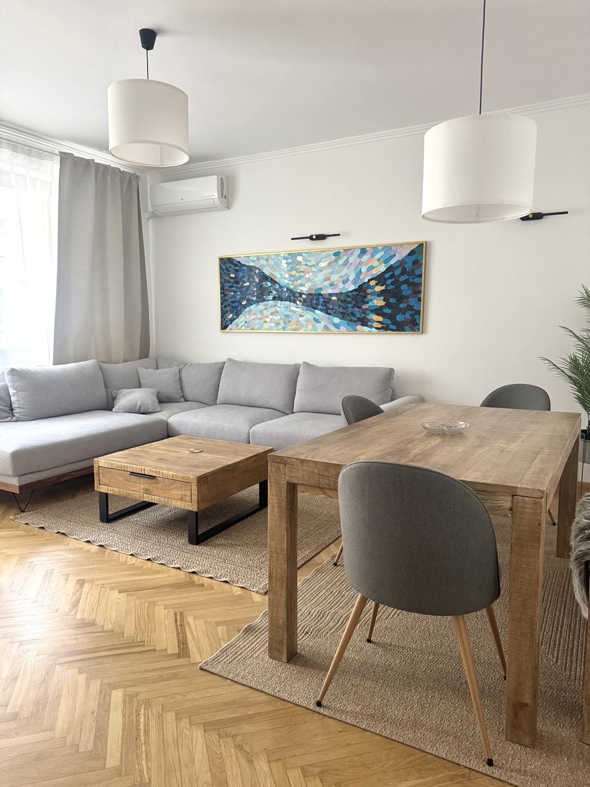 For rent: an exclusive, fully renovated, never-lived-in two-bedroom apartment located in a quiet part of Drinčićeva Street, just steps away from the Bitef Theatre and Skadarlija.