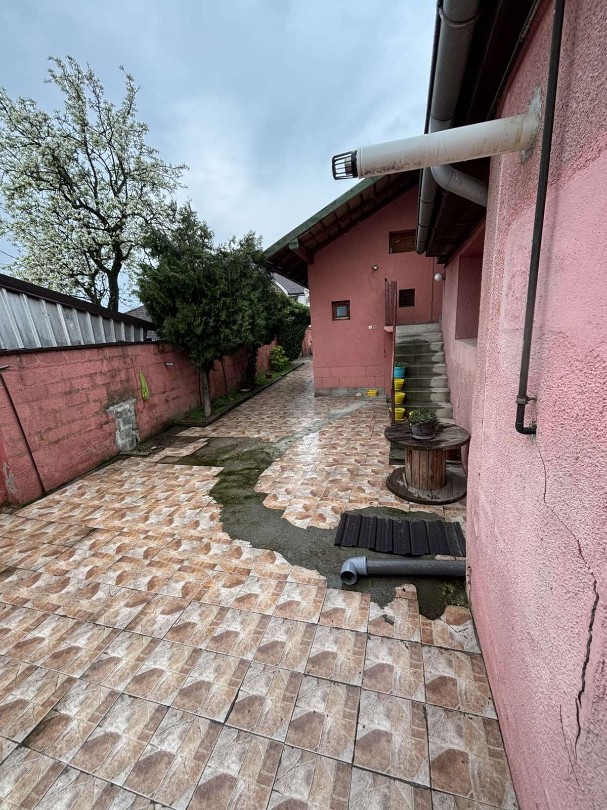 Parking za 3 automobila ispred kuće, dvorište veći deo popločen i betoniran, natkrivena terasa.