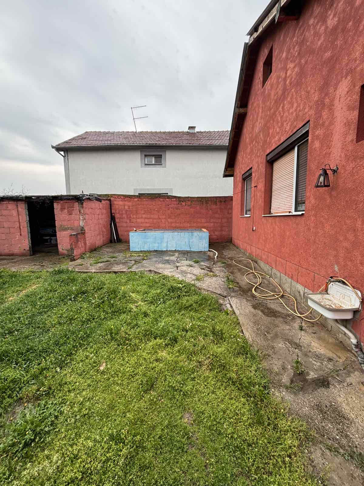 Garaža 24m2- uknjižena, potkrovlje, podrum, tavan, mali bazen zidan 2×3.