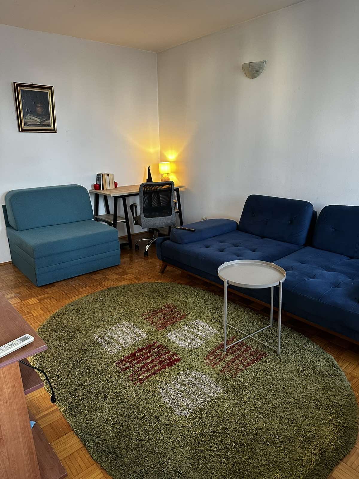 ENG – We rent a functional apartment. In front of the building there is a public parking lot and a bus stop. Across the street from Vero Market. The apartment is oriented towards the park, so there is no traffic noise.