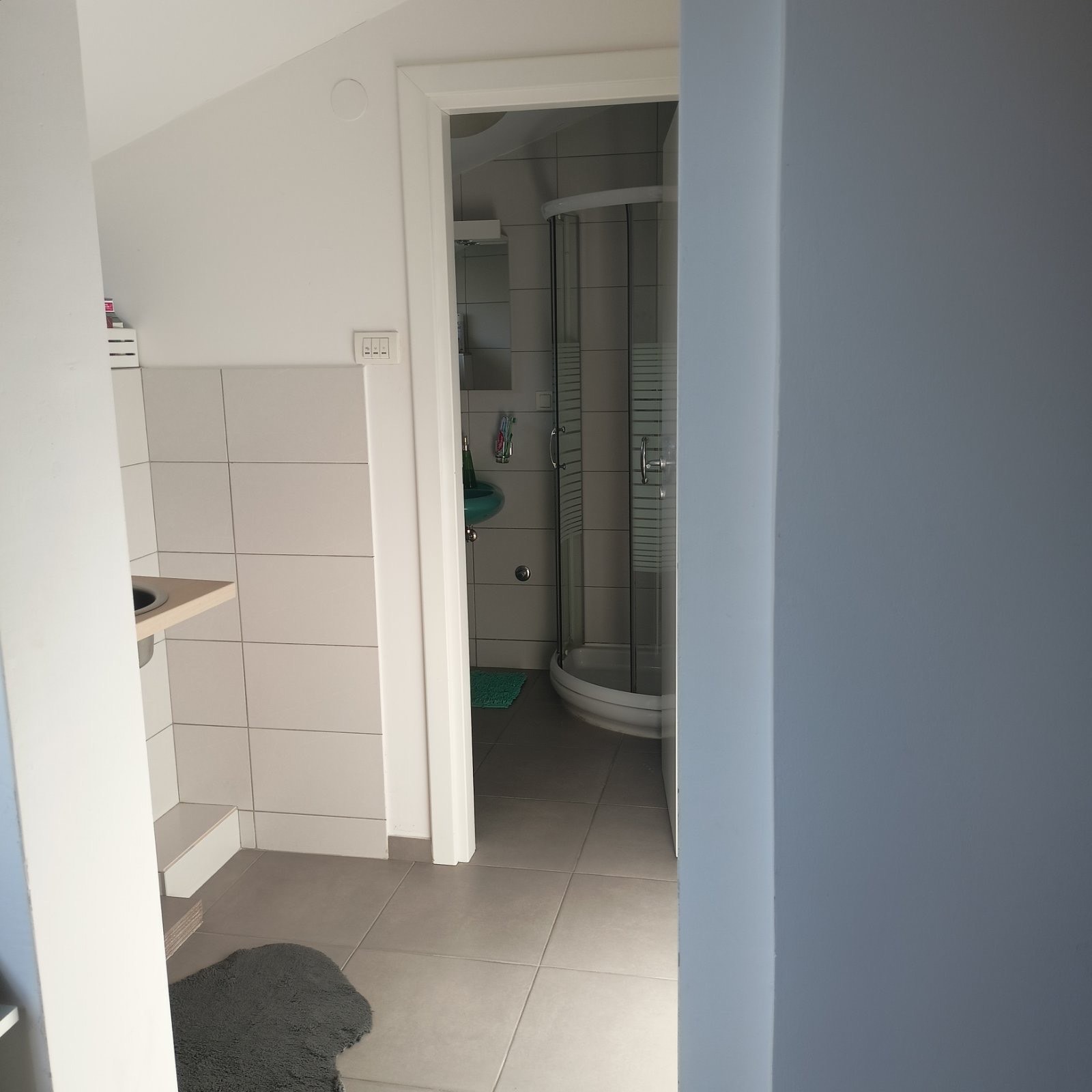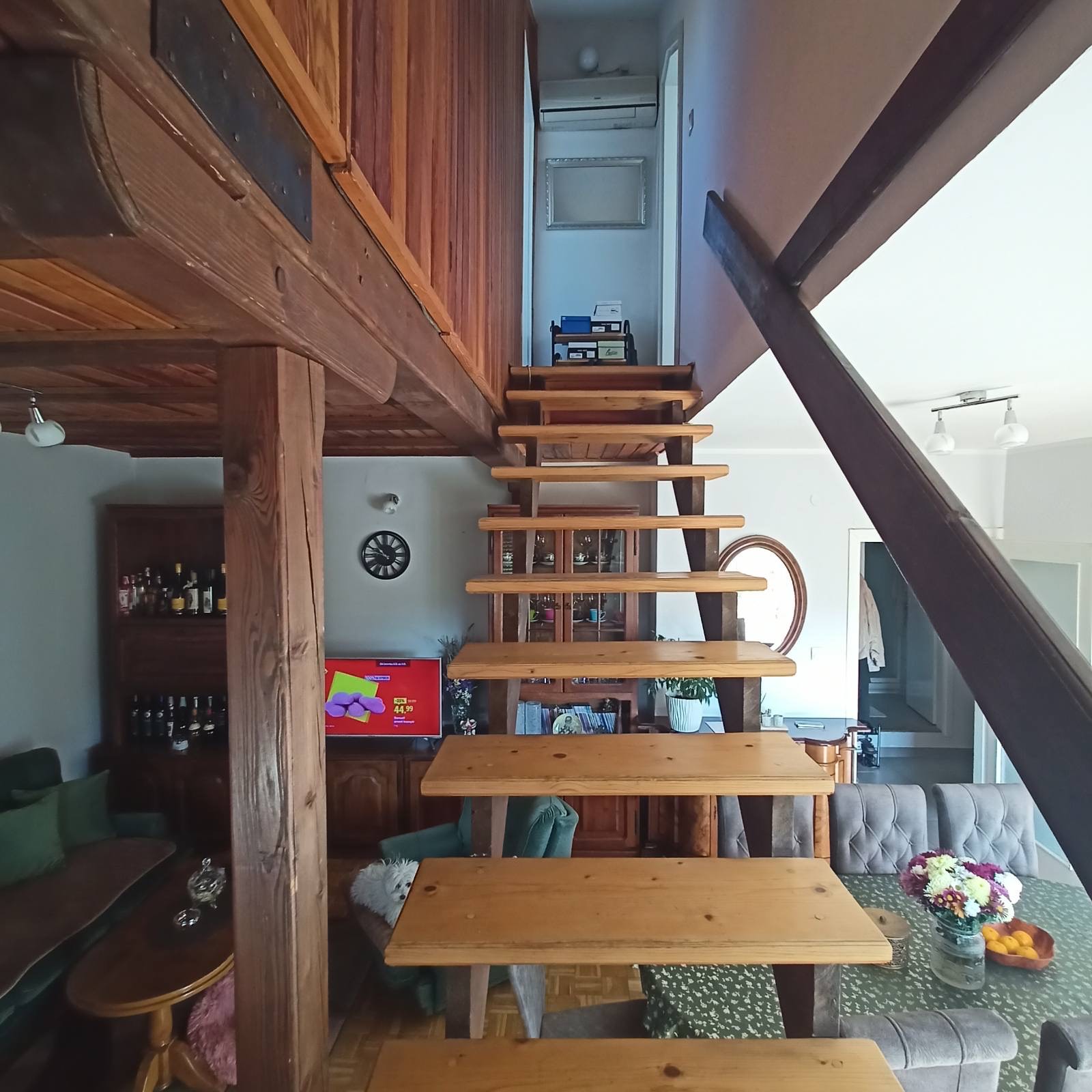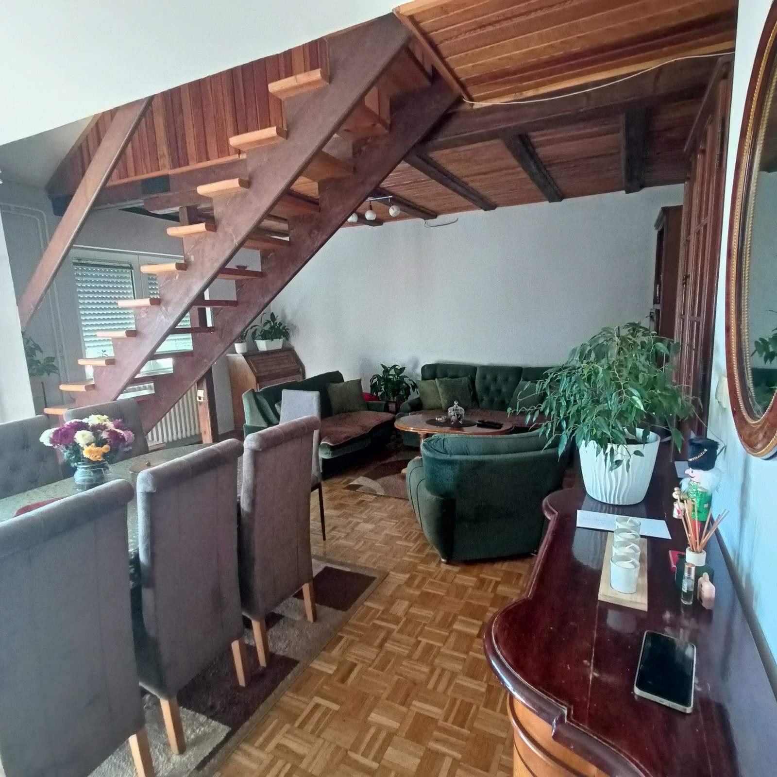 Drvene stepenice vode na gornji nivo gde se nalaze dve manje spavaće sobe, dodatno kupatilo, ostava i prostor koji se može iskoristiti kao čajna kuhinja i radni prostor. Stan je funkcionalan, prostran i pogodan za udoban život i rad iz njega. U blizini se nalaze Dom Zdravlja, trgovine, mesare, apoteke, vrtići i šklole.