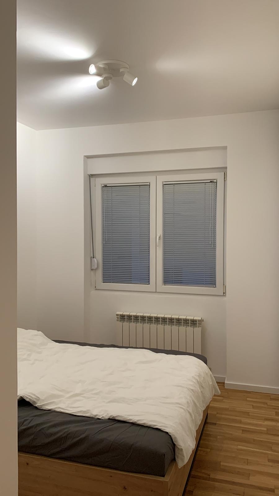 Struktura stana: Dnevna soba, kuhinja sa trpezarijom, dve spavace sobe i kupatilo + garaza. Stan je useljiv od 1. Novembra.