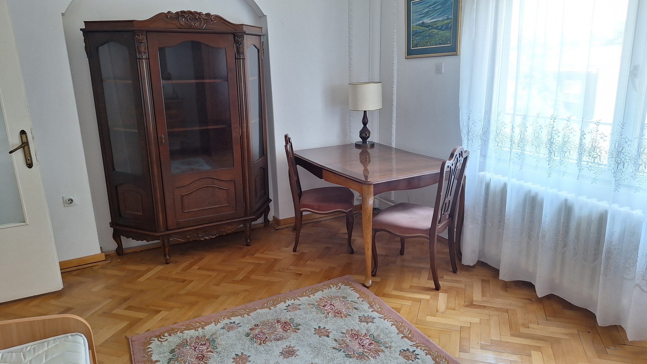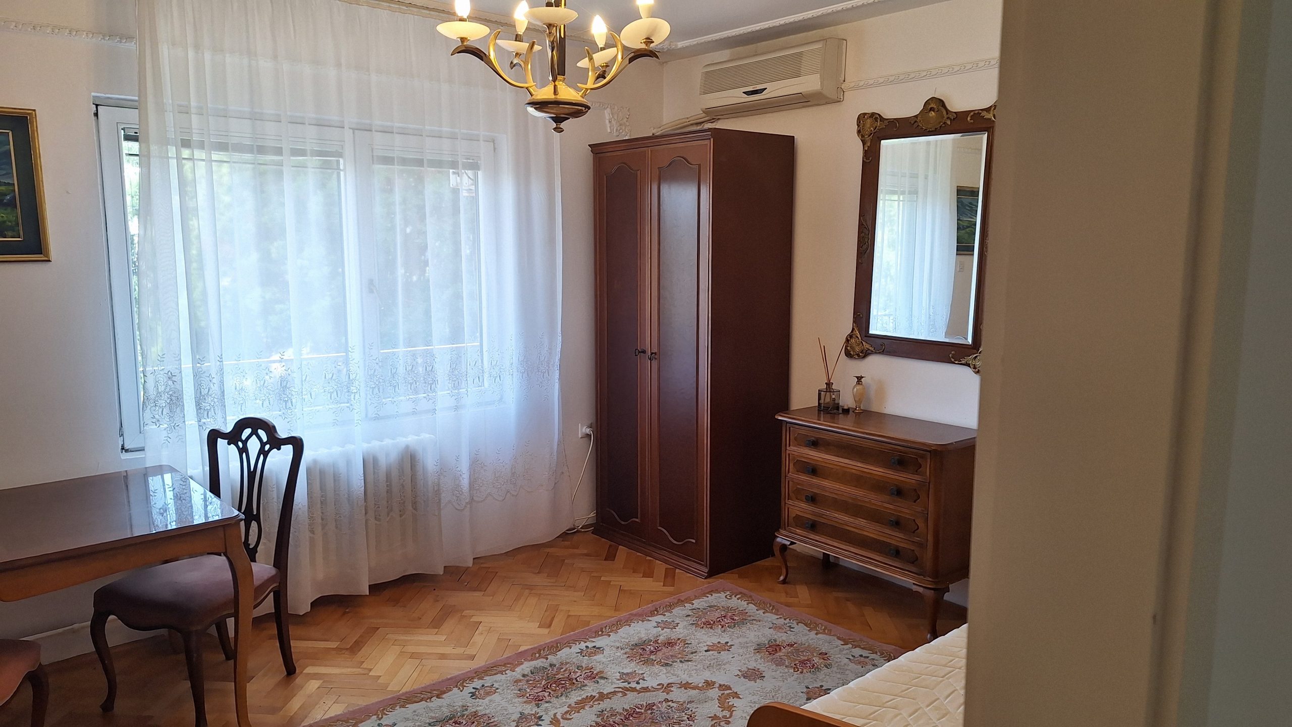 Stan u kući, na 1. spratu, rezije oko 100€, ljubimci da manji psi, parkiranje ispred kuće, nije zona, stranci da, grejanje je na gas po potrošnji, stan ima 87m2, trosoban je (2 spavaće sobe,dnevna soba, kuhinja, kupatilo, 2 balkona), mirna i tiha lokacija, dobro povezana sa gradom, cena zakupa je 690€.