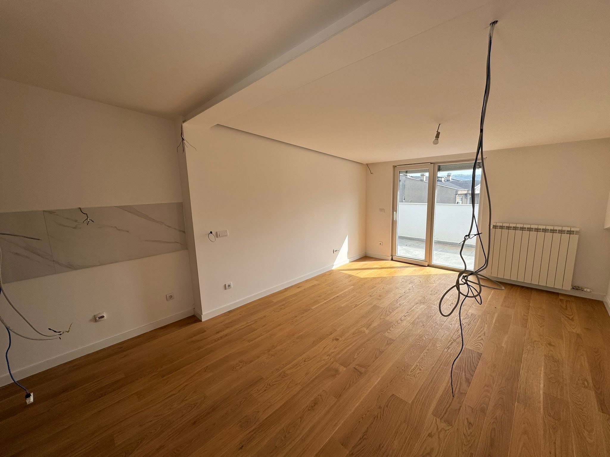 The apartment consists of a spacious living room with a kitchen and dining room, a bathroom and a large terrace. Thanks to the good orientation, the apartment is extremely bright and pleasant throughout the day. It is located in an excellent location, in a quiet part of Voždovac, near a school, kindergarten, faculty, market, as well as bus lines and all other facilities necessary for a comfortable city life.