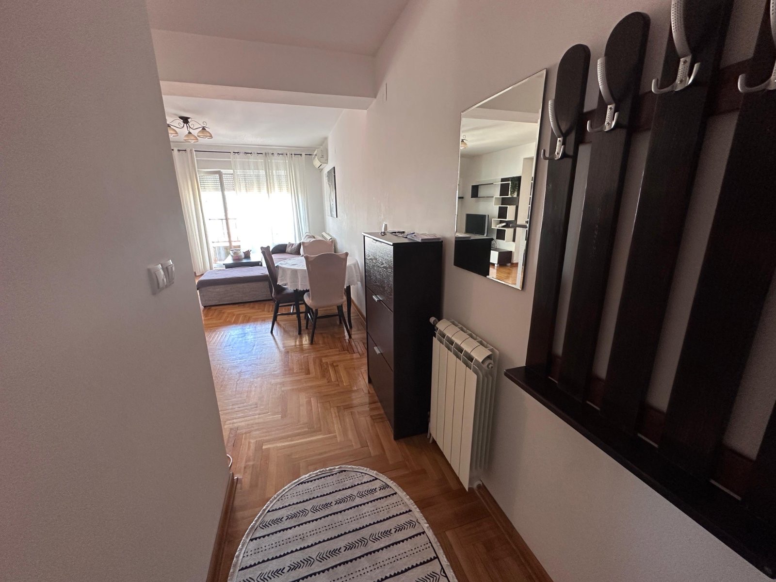Stan, dvostrano orjentisan. na trećem spratu ima dve zasebne sobe i dnevnu u sklopu sa kuhinjom i trpezarijom. Mirno, u blizini okretnice 26,50,18, blizina pijace, skole, obdanista TC Stadìn. Nisu dozvoljeni kućni ljubimci. Izdavanje na duži period, ugovor minimum godinu dana.
