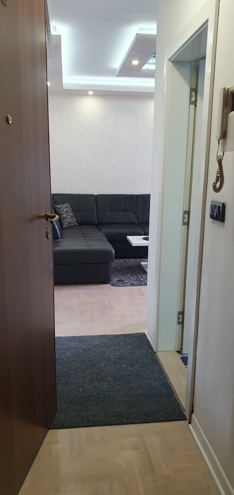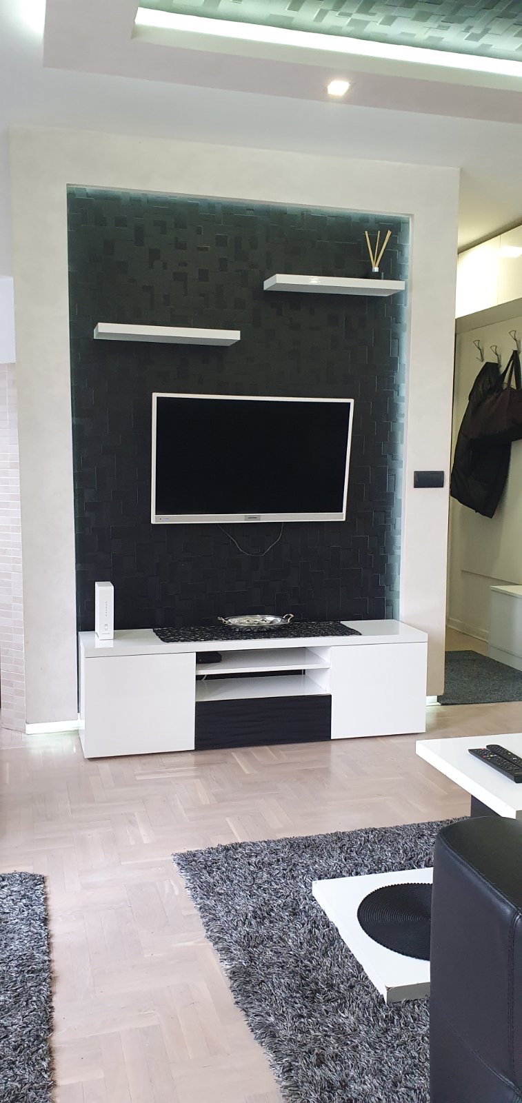 Stan je moderno opremljen, kvalitetan nameštaj sa odvojenom spavaćom sobom.