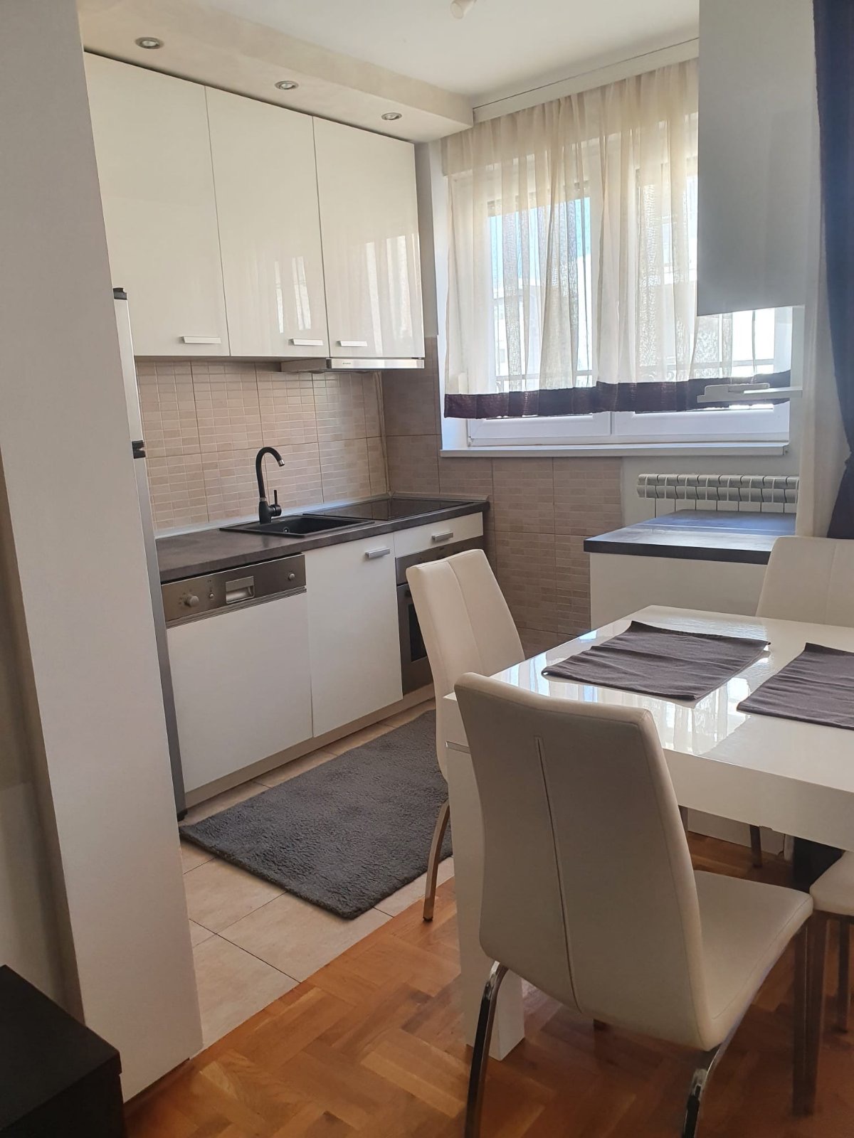 Stan je moderno opremljen, kvalitetan nameštaj sa odvojenom spavaćom sobom.