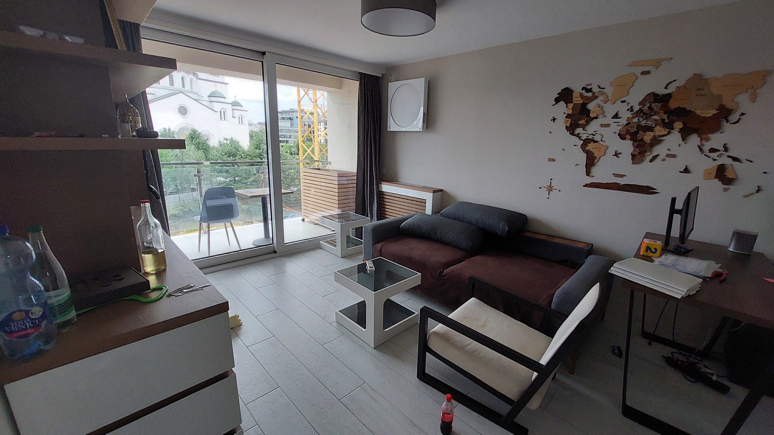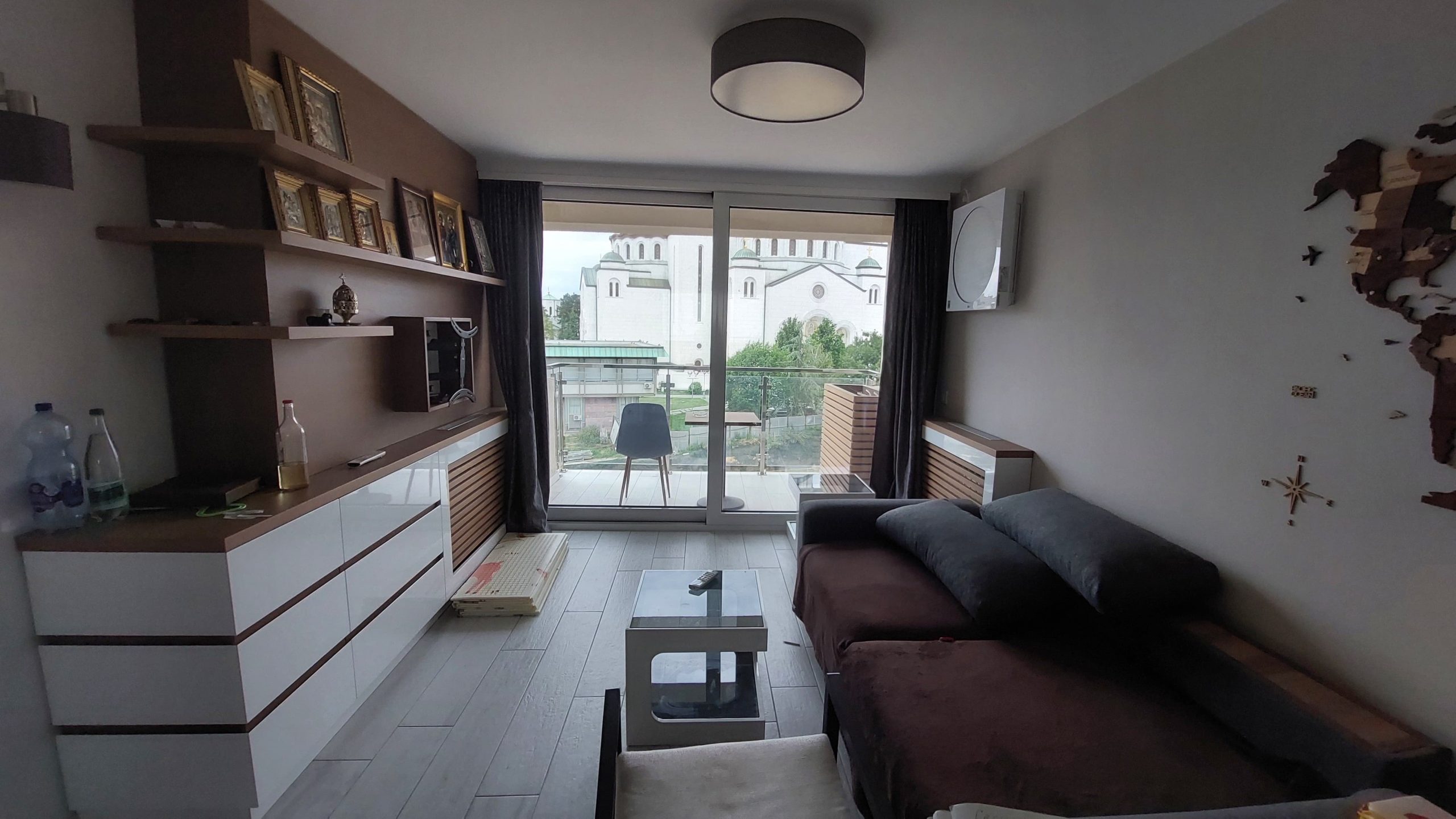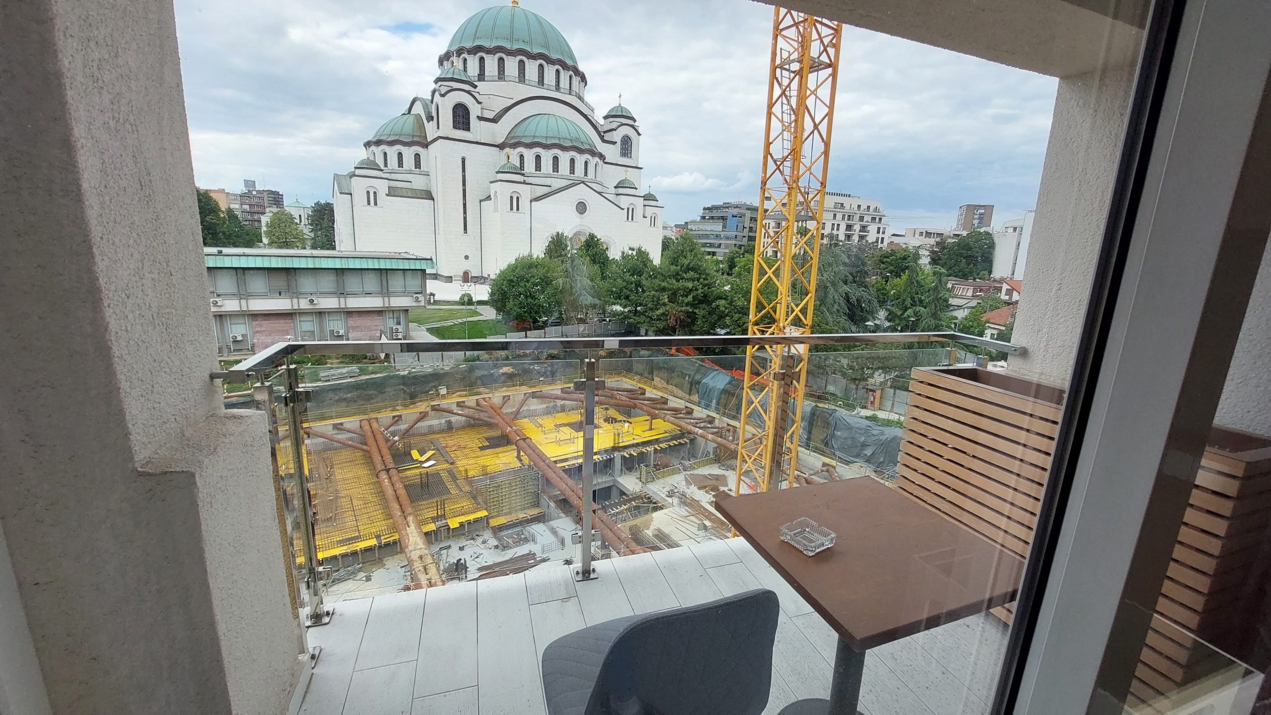 ENG – An exceptional apartment on the first line with a beautiful view of the Temple of St. Sava, two rooms, one of which has its own terrace, a separate kitchen and a beautiful living room with a terrace and an exceptional view of the Temple.