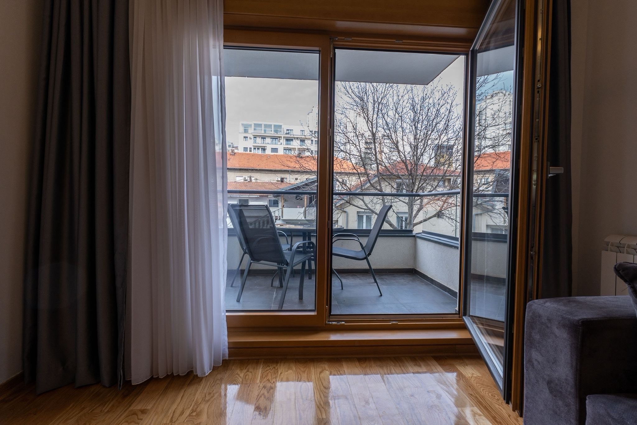Vračar, Južni Bulevar 43 m2, terasa, prvi sprat, lux, kompletno opremljen, moguca doplata za parking mesto sa barijerom na daljinski.