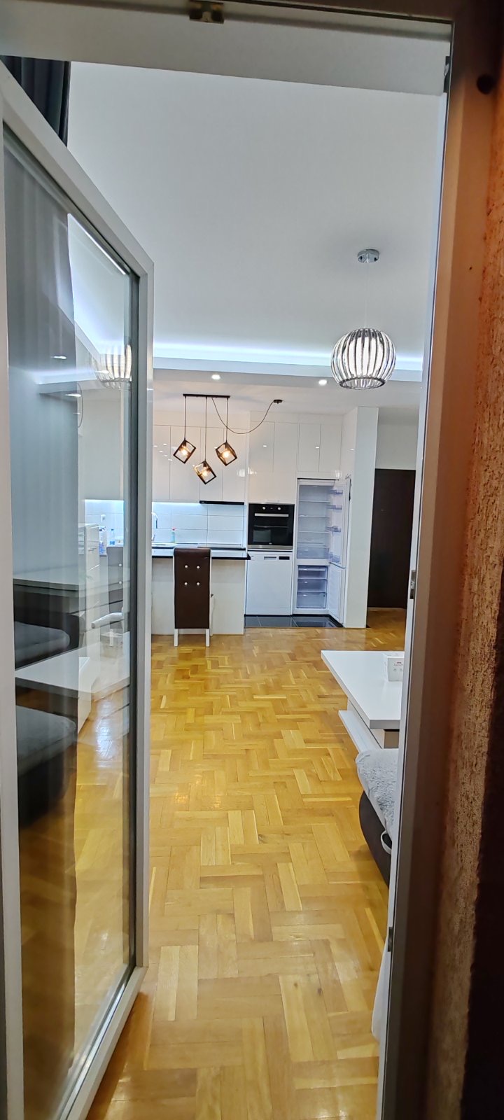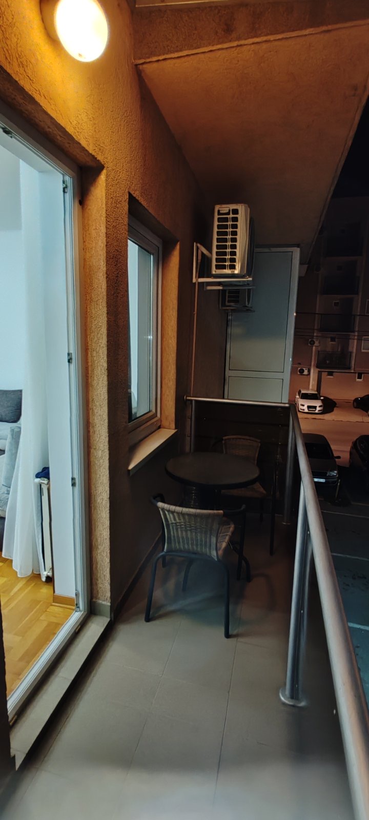Terasa sa pogledom na ulicu. Market u zgradi. Parking mesto ispred zgrade. Pošta, banka, menjačnica na 10-ak minuta hoda. Restorani sa dobrom klopom i kafići u kraju na par minuta od stana.