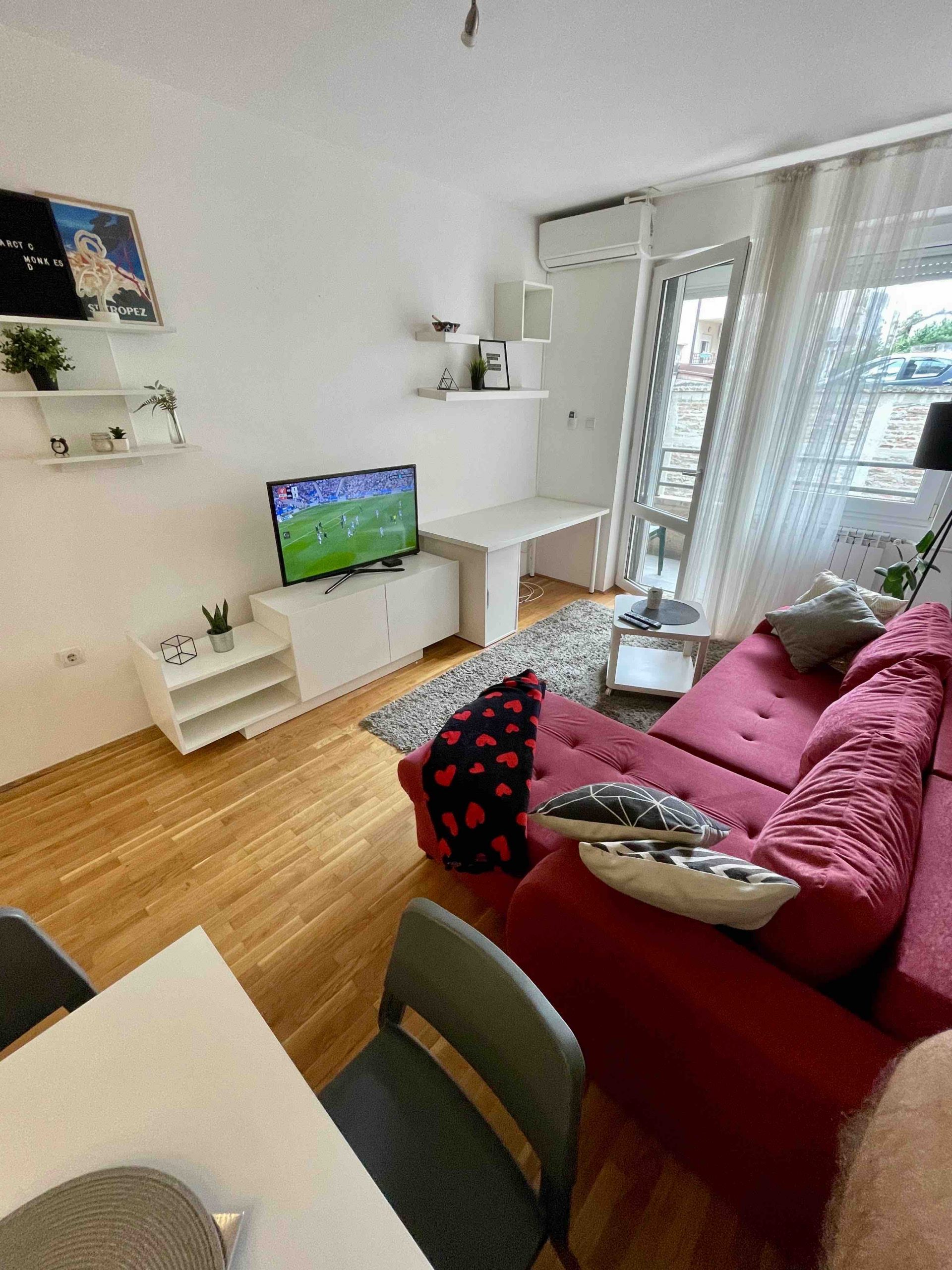 ENG- Beautiful, modern and equipped apartment in a wonderful part of Zvezdara, 50m from the Boulevard. Oriented towards the courtyard and east, very quiet. It consists of a spacious living room with a new kitchen, a separate bedroom with a large bed and built-in wardrobes, and a large bathroom. The apartment is fully furnished – washing machine, dishwasher, air conditioning, optical internet…