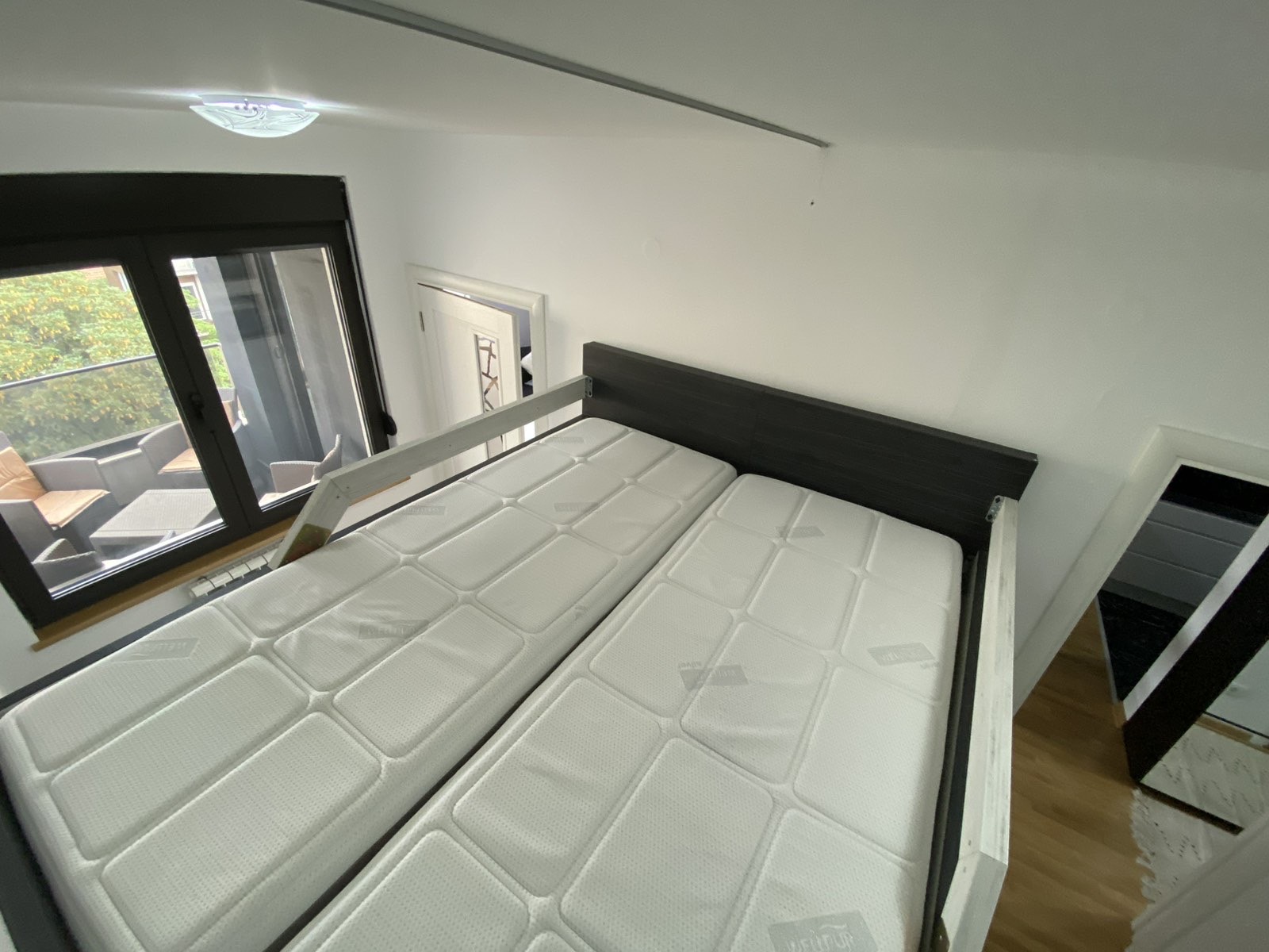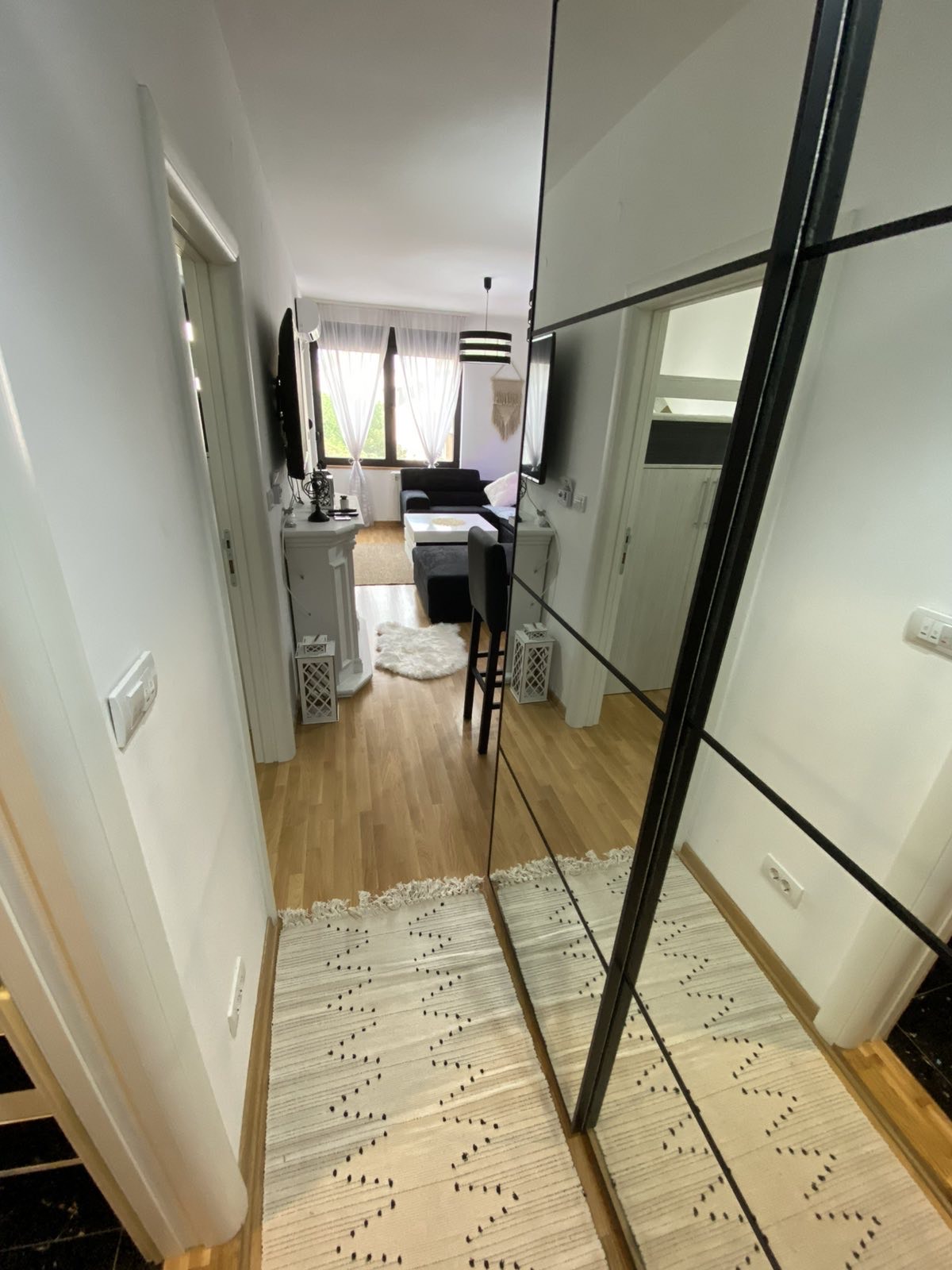 Spavaća soba može da se podeli na 2 dečije, moze da bude i kao veliki francuski a ako uzimate na duži period može potpuno nova soba. Visina stana 280 cm. Doplata za garažu 50e